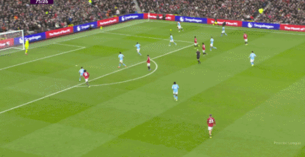 第75分钟,多尔古接库尼亚传中破门,曼联2-0领先曼城。